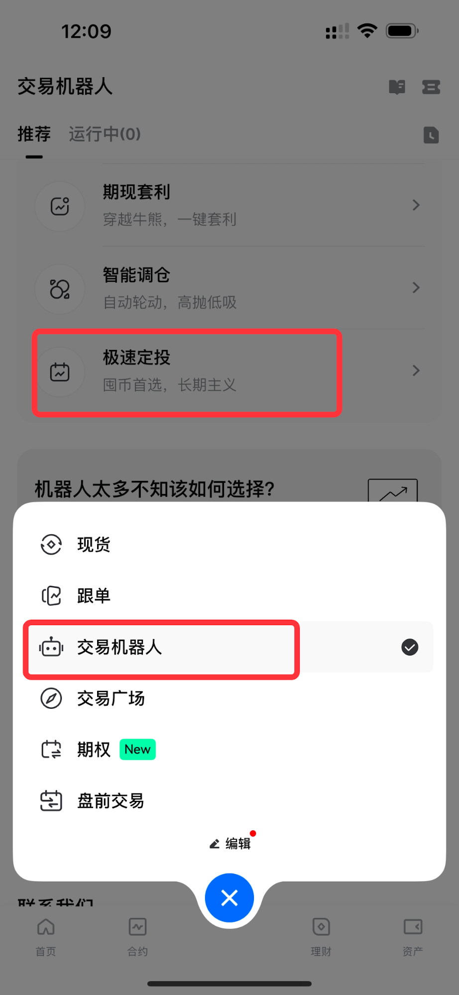 5.若是不想复制策略,可以在定投理财页面中点击 “+ 新建定投”,新创定投策略,用户根据自己的喜好配置策略参数。