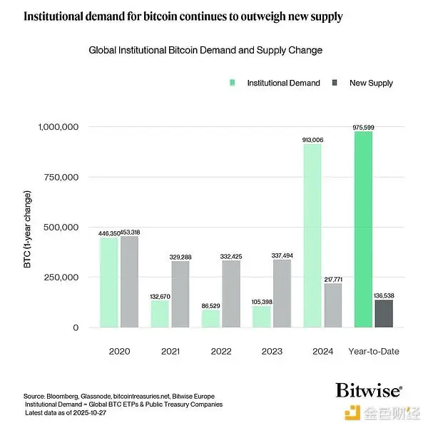 تظهر بيانات عام 2025 أن حجم الطلب المؤسسي قد بلغ حوالي 7 أضعاف الفجوة في العرض الناتجة عن نصف الكمية!