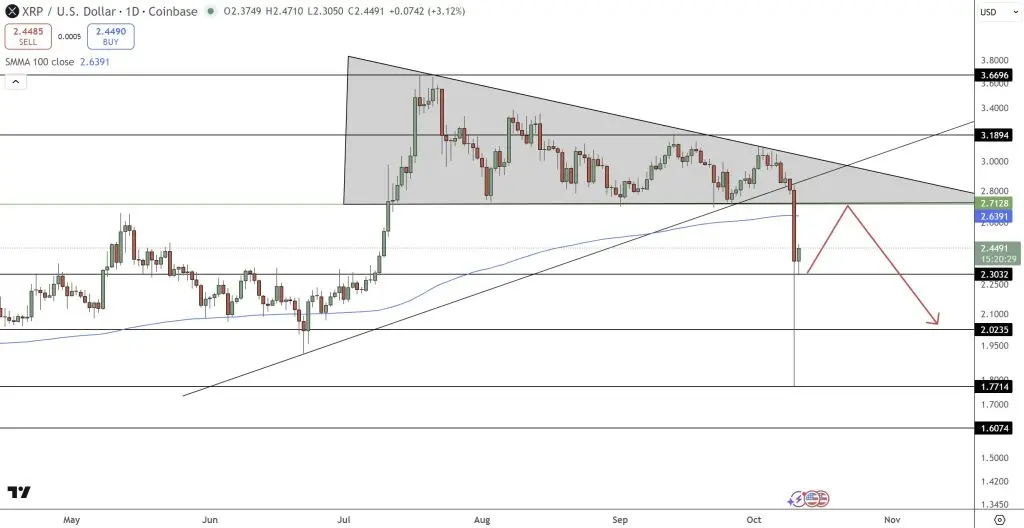Prediksi Harga XRP: Penembusan Segitiga Berbalik Menjadi Bearish
