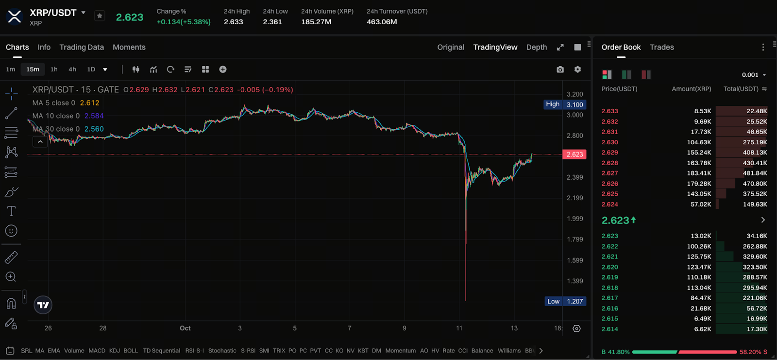 XRPは現在約2.50ドルで取引されており、直近では価格が大きく反発しています。テクニカル面では2.82ドルが重要なサポートラインとなっており、過去にも強い買いが入る水準です。このラインを維持し、出来高が増加し、上方ブレイクが発生した場合、より力強い上昇トレンドの兆しとなります。