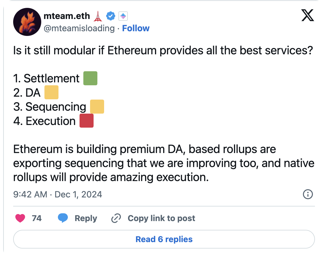 この推論の第4点も不十分です。私たちは、Rollup中心のロードマップがL1ネットワーク効果のフライホイールに与える潜在的な欠点を正しく評価できていません。