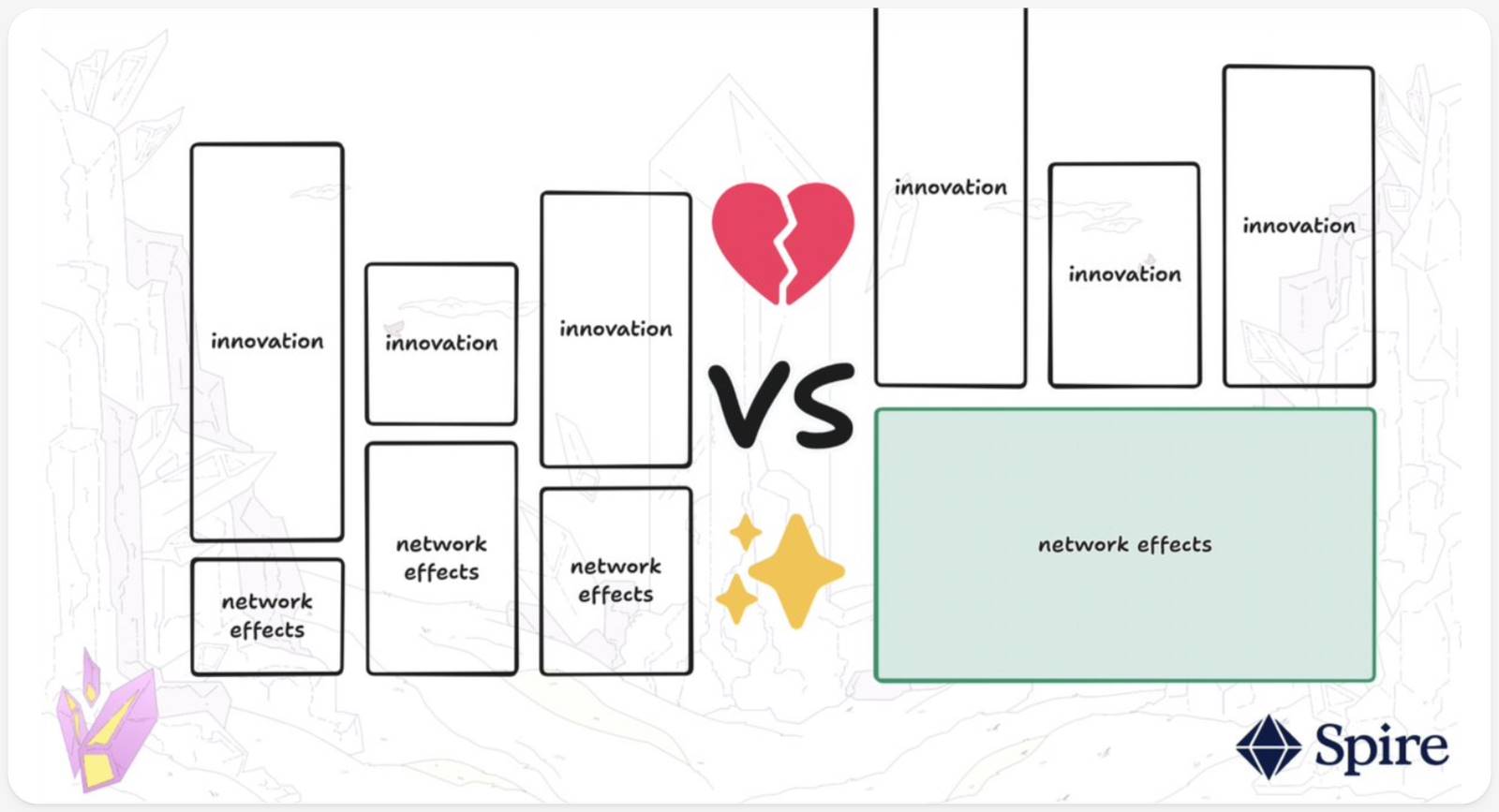 私たちはこのようにネットワーク効果のフライホイールを再構築できると信じています: