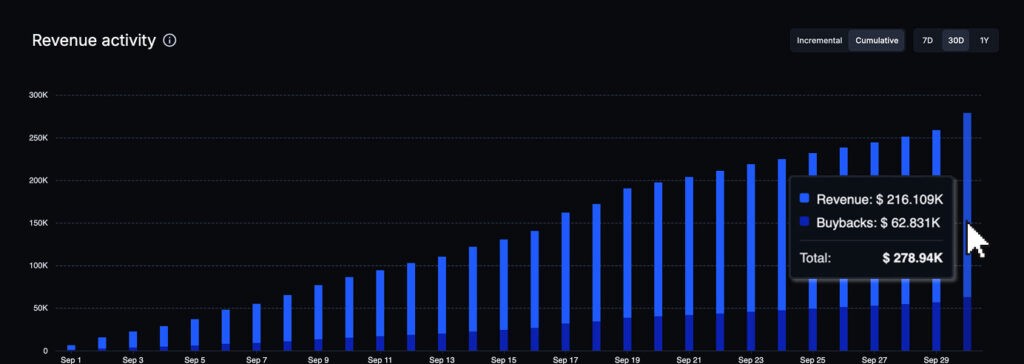 このメカニズムの効果は、ステーキングがより強力な自社株買いを促進し、より強力な自社株買いがステーキングへのインセンティブを増加させるフィードバックループであり、すべてはプロトコルの収益成長によって強化されます。9月だけで、このモデルは62,800ドル以上の報酬を配分し、プロトコルの成長がエコシステム参加者にとって具体的な価値に直接結びつくことを示しました。