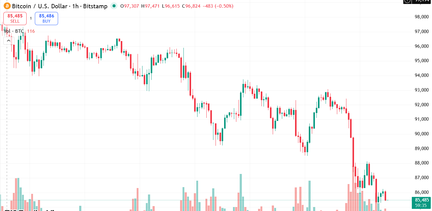 ビットコインは重要な$90,000のサポートゾーンを下抜け、ほぼ$86,000まで下落。これにより主要取引所で自動精算が一斉に発生しました。次の強いサポートは$83,800付近にあり、さらなる下落が続くかどうかを見極めるためトレーダーはこのレベルを注視しています。