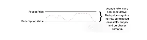 Экономическая динамика жетонов аркадных игр отличает их от других типов токенов. Жетоны аркадных игр не предоставляют их держателям право собственности на основную экосистему, а предоставляют держателям право доступа или использования конкретных приложений или услуг; что имеет решающее значение, так это то, что их рыночная стоимость разрабатывается с учетом программных ограничений. Это не означает, что жетоны аркадных игр должны быть привязаны к цене фиатной валюты, как это делают стабильные монеты; это просто означает, что эмитенты могут использовать определенные механизмы для установки нижнего предела цены и, что обычно более важно, верхнего предела цены.