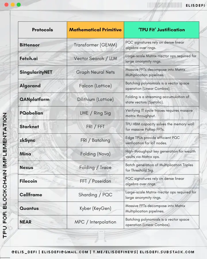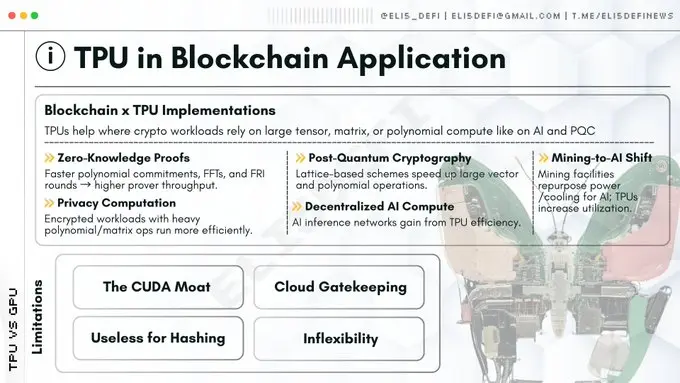 TPU (и схожие ASIC-ускорители) постепенно станут стандартным “математическим слоем” Web3, специализируясь на генерации доказательств с нулевым разглашением и постквантовых криптографических подписях.
