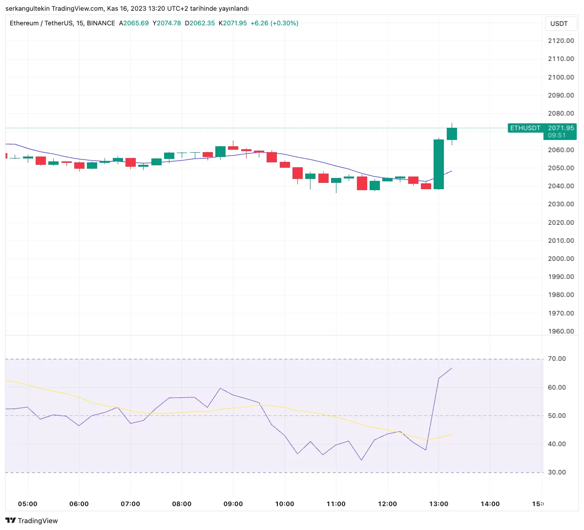 Haber sonrasında ETH fiyatı %2’ye yakın artış kaydetti ve 2,074 dolara yükseldi.
