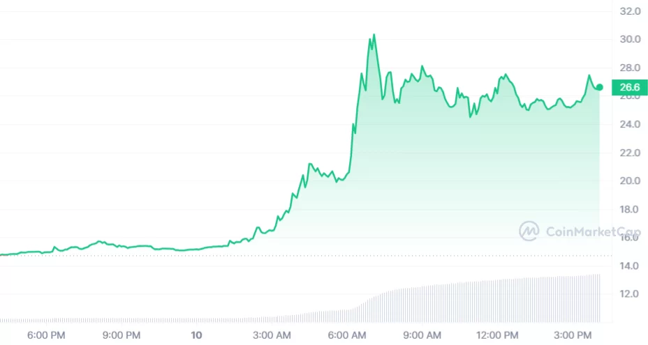 Bu yazının yazıldığı anlarda OKT fiyatı son 24 saatte yaşadığı %80’lik yükselişin ardından 26.54 dolardan işlem görüyor.