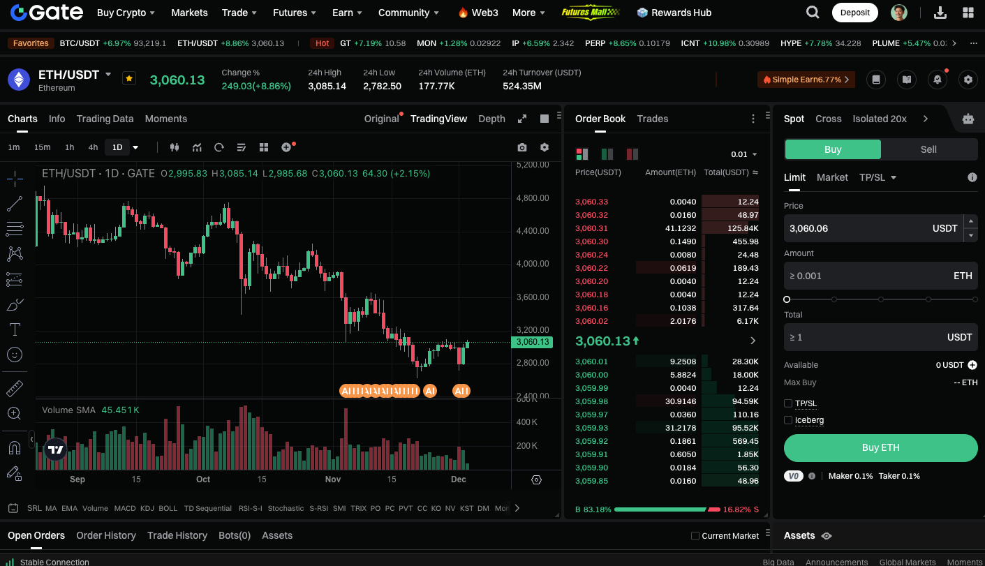 Розпочніть спотову торгівлю ETH: https://www.gate.com/trade/ETH_USDT